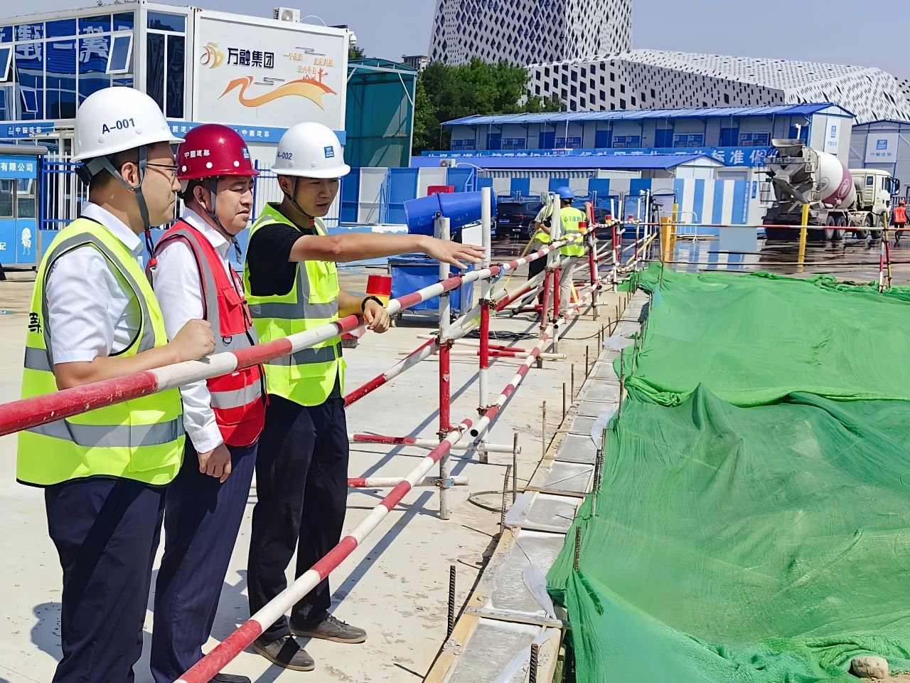 在西客站片區(qū)中軸線地塊B-4項目,?;瘧椩敿毩私忭椖拷ㄔO概況、工期進度、安全生產(chǎn)及文明施工等情況,重點檢查了現(xiàn)場支護、樁基吊裝作業(yè)、安全用電、防護措施。他指出,要提高站位,落實精細化管控,打造相關(guān)方滿意的“共贏”工程;強化責任,持續(xù)加強危大工程、消防安全、大型機械、有限空間作業(yè)四個重點領(lǐng)域監(jiān)管,落實現(xiàn)場文明施工常態(tài)化,切實筑牢安全防線;快速響應,加快支護與土方施工進度,掛圖作戰(zhàn)、高效穿插,確保項目完美履約;加強管理,重點關(guān)注基坑監(jiān)測,做好邊坡巡查,儲備足量防汛物資,定期開展防汛演練,確保平穩(wěn)度汛。