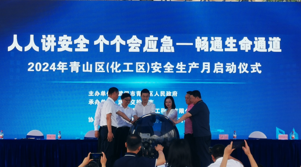 武漢市青山區(qū)(化工區(qū))“安全生產(chǎn)月”啟動儀式在青山武糧庫項目舉辦。武漢市青山區(qū)委常委、副區(qū)長楊海牛,區(qū)政府辦副主任楊青,區(qū)應急局局長謝光軍,區(qū)城建局局長宋啟娟,區(qū)發(fā)改局、教育局、科經(jīng)局、公安分局、民政局、人資局、規(guī)劃分局等相關負責人,武漢市交投集團總經(jīng)理劉正濤,中建八局華中分局及參建單位、工友代表共計150余人參加活動。