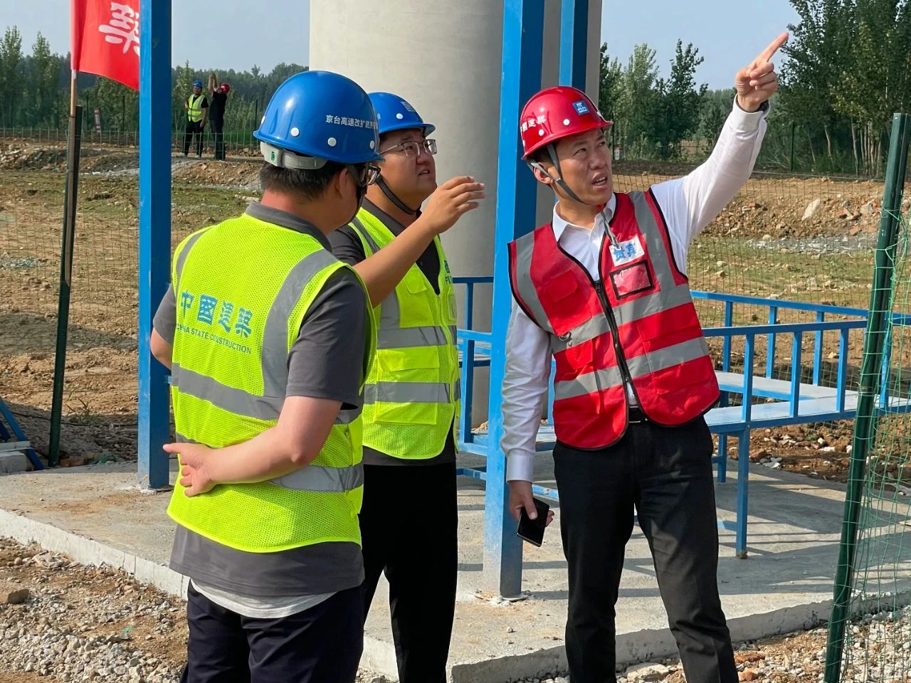 7月4日,中建八局一公司黨委書(shū)記、董事長(zhǎng)齊朋到京臺(tái)高速齊河至濟(jì)南段改擴(kuò)建項(xiàng)目開(kāi)展“四不兩直”安全帶班檢查。