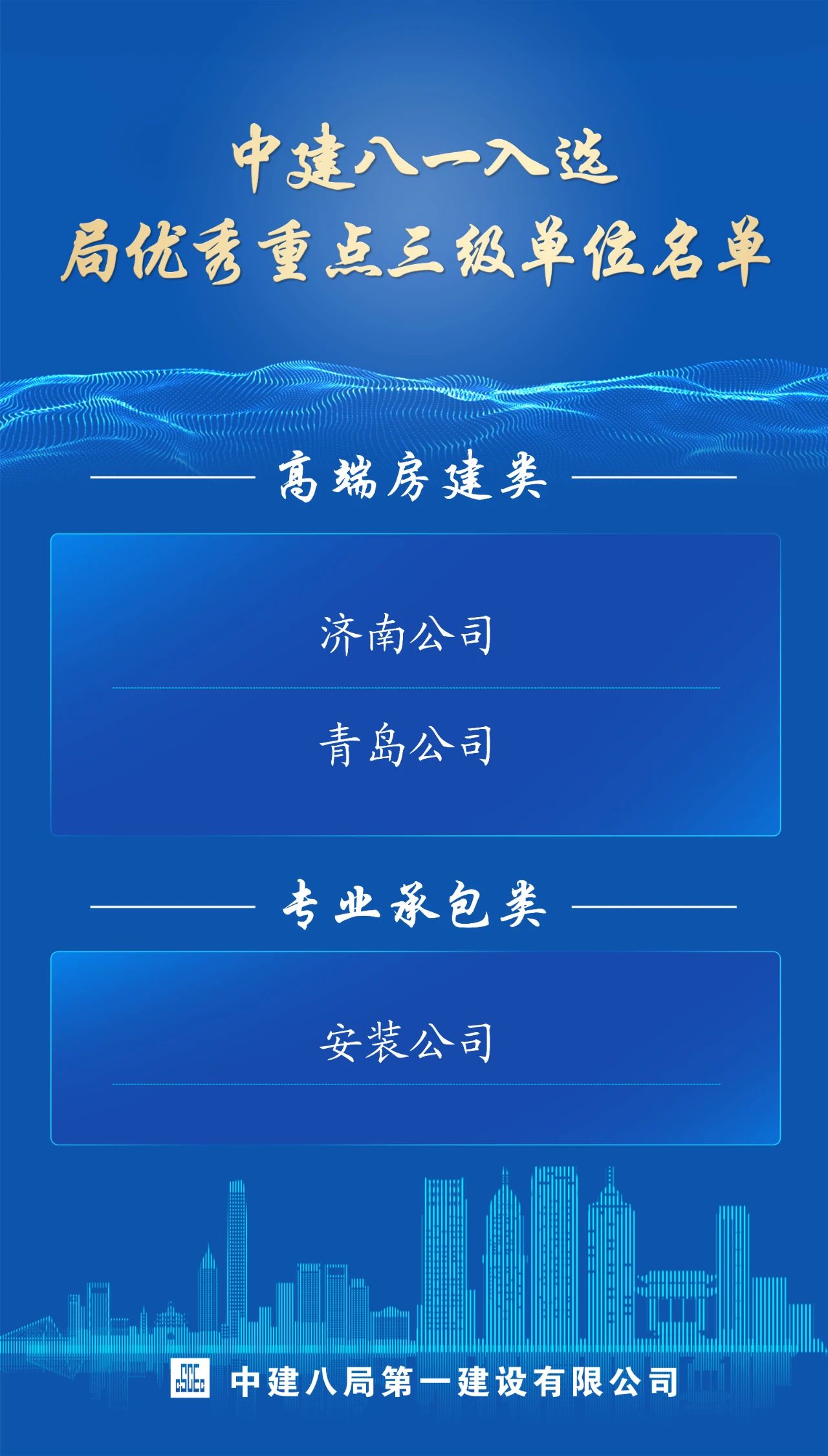 7月22日,中建八局2023年度優(yōu)秀重點(diǎn)三級(jí)單位名單公布,中建八一共3家單位上榜,其中,濟(jì)南公司、安裝公司分別位列高端房建類、專業(yè)承包類第一名。