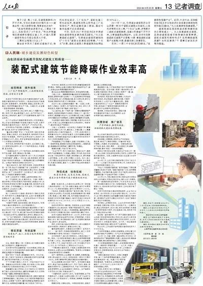 8月23日,人民日報刊文《山東濟南市全面提升裝配式建筑工程質(zhì)量——裝配式建筑節(jié)能降碳作業(yè)效率高》,報道中建八局投資建設(shè)的中國建筑綠色產(chǎn)業(yè)園(濟南)長期致力于裝配式建筑產(chǎn)業(yè)發(fā)展,加快構(gòu)建綠色制造體系和綠色建筑產(chǎn)品產(chǎn)業(yè)鏈,推廣應(yīng)用鋁合金模板、爬架、鍍鋅方管、單元幕墻,創(chuàng)新研發(fā)透光、雕刻、高性能混凝土、智能裝配設(shè)備等30余種綠色建筑產(chǎn)品和技術(shù)。
