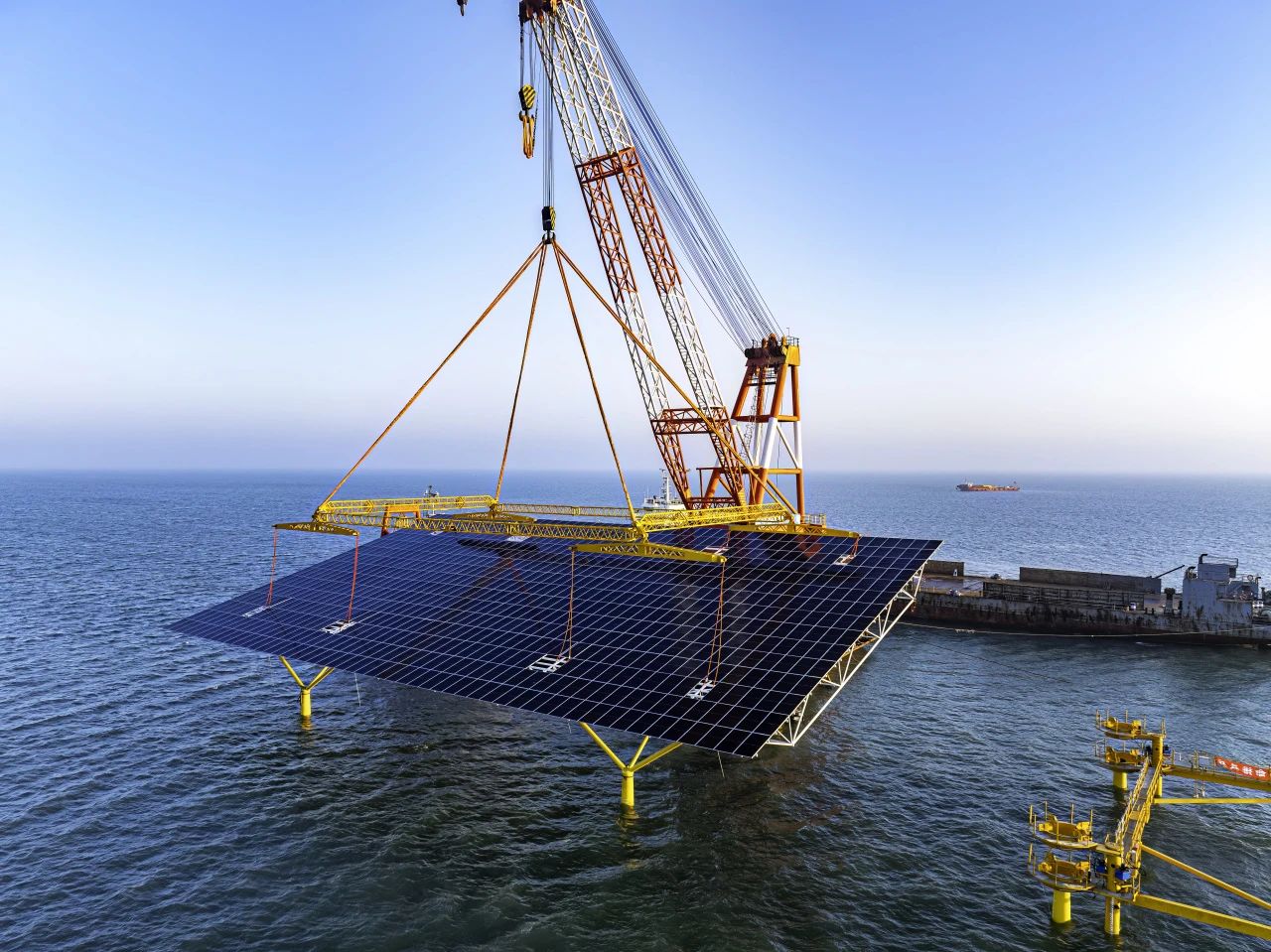 東營國華HG14海上光伏項目是國內(nèi)首個GW級樁基固定式海上光伏項目,中建八局參建的標段位于東營市墾利區(qū)以東海域,中心離岸距離8公里,規(guī)劃裝機容量100萬千瓦,建成投產(chǎn)后預計年可發(fā)電17.8億千瓦時,節(jié)約標準煤約59萬噸,減少二氧化碳排放量約144萬噸。
