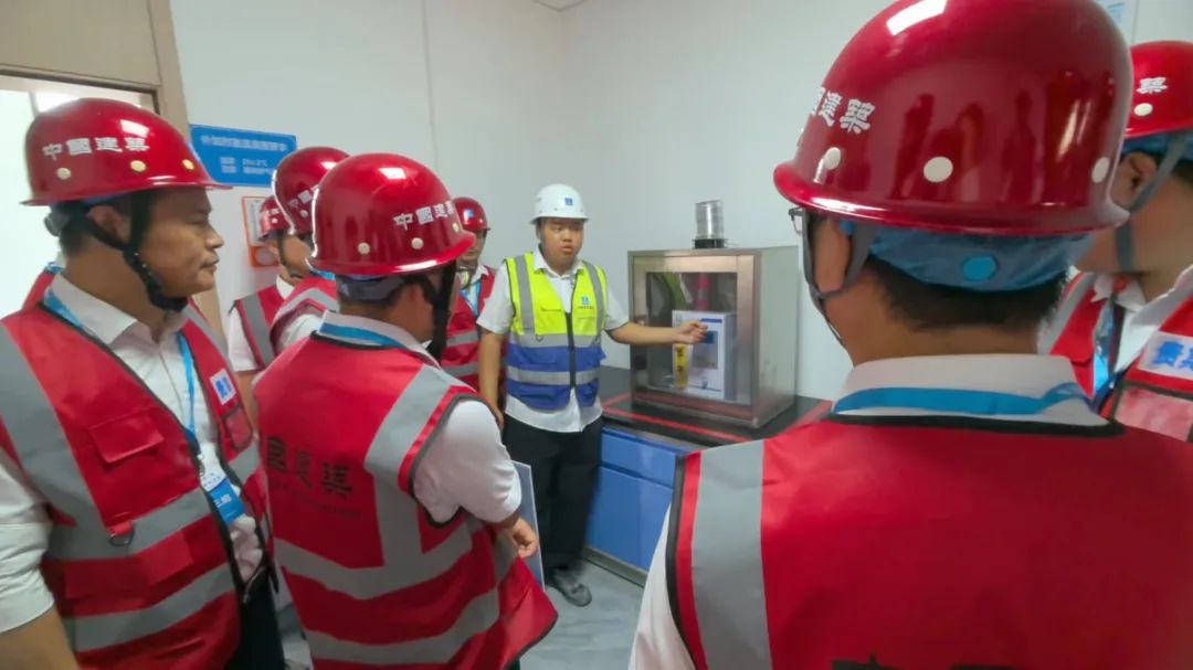 在自建拌合站,學(xué)員參觀了工地試驗室與料倉,并親自動手進行鋼筋力學(xué)試驗與粉煤灰性能快速檢測試驗等。