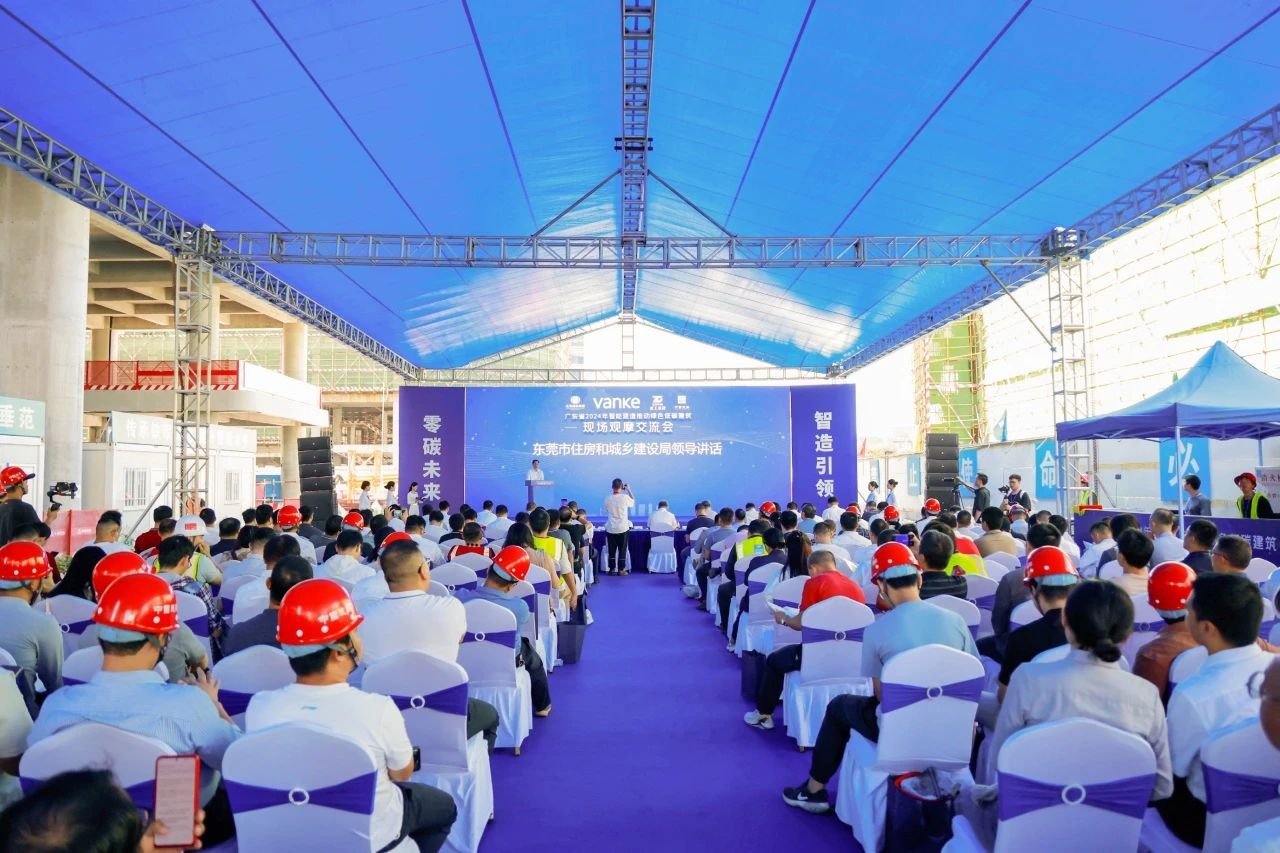 東莞市住房和城鄉(xiāng)建設局總工程師曹偉、三級調研員雍春亭,南城街道相關負責人;廣東省土木建筑學會理事長徐天平,中國工程院院士、深圳市建筑設計研究總院有限公司總建筑師孟建民,東莞市萬科房地產有限公司副總經理劉健華;中建八局華南分局總工程師方順江,中建八局一公司副總經理、總工程師谷力,華南公司相關負責人,各參建單位代表,以及廣東省、東莞市建筑行業(yè)相關部門、相關企業(yè)負責人等500余人現(xiàn)場參加,線上觀摩人數(shù)5000+。
