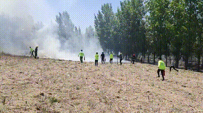 項目救火隊到達火場時,當(dāng)?shù)叵狸犚惨呀?jīng)抵達,此時的火情現(xiàn)場濃煙蔽空,刺鼻的焦糊味裹挾著熱浪撲面而來,柳絮燃燒形成的火焰借著風(fēng)勢,沿著干枯植被與低矮灌木叢擴張,極有可能蔓延至兩邊的村莊與農(nóng)田。