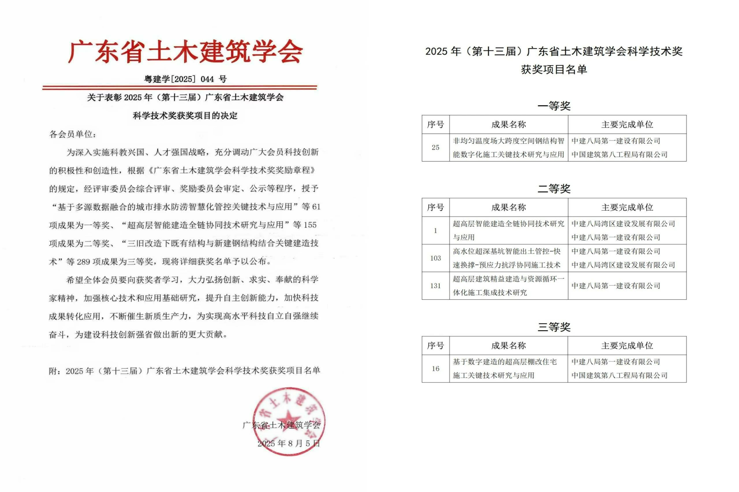 “智”筑嶺南!中建八一再添5項(xiàng)省級(jí)科技獎(jiǎng)