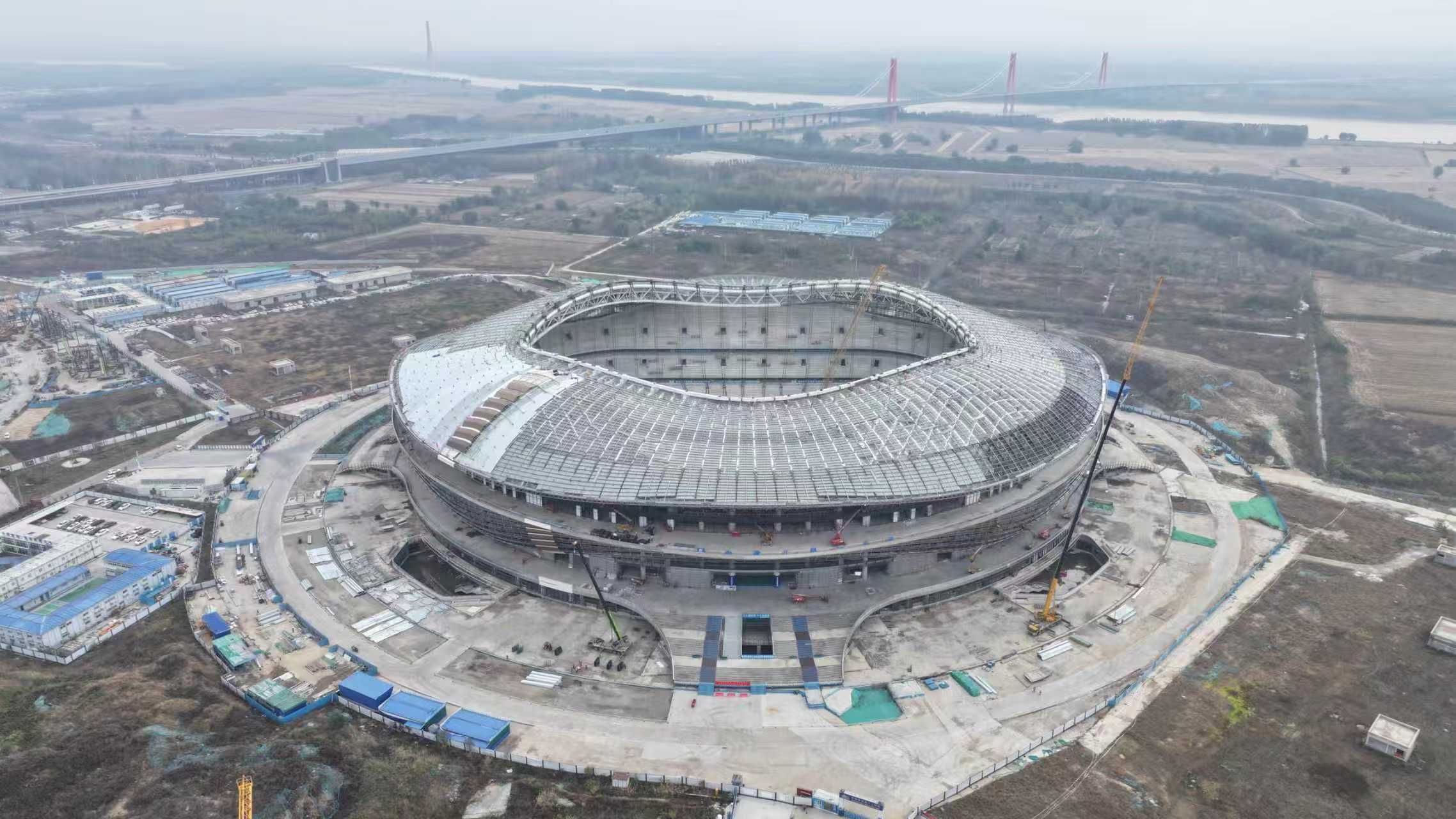 黃河體育中心專業(yè)足球場(chǎng)項(xiàng)目位于濟(jì)南新舊動(dòng)能轉(zhuǎn)換起步區(qū),總建筑面積19.7萬平方米,采用國際足聯(lián)FIFA最新標(biāo)準(zhǔn) ,是山東省首個(gè)6萬座專業(yè)足球場(chǎng),落實(shí)黃河流域生態(tài)保護(hù)與高質(zhì)量發(fā)展戰(zhàn)略重點(diǎn)工程,目前處于索結(jié)構(gòu)施工階段,預(yù)計(jì)2026年竣工。