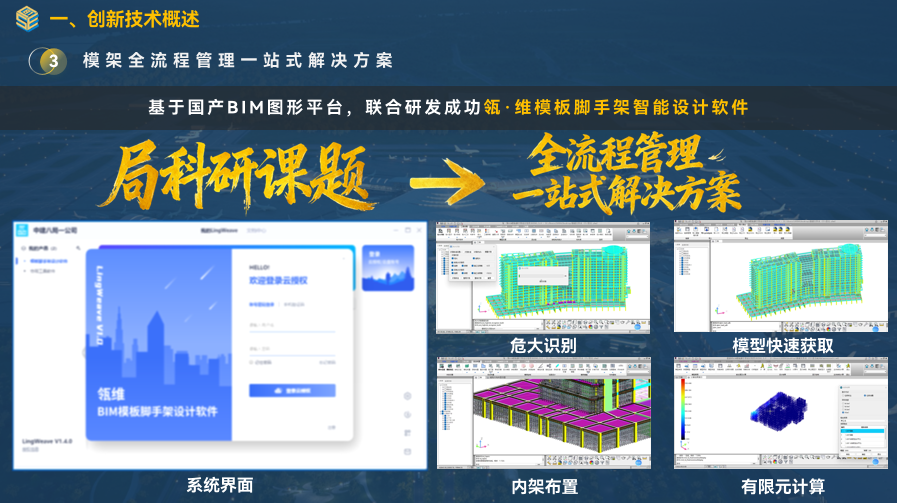 BIM 技術(shù)賦能周轉(zhuǎn)料具精益管控:濟(jì)南公司科創(chuàng)中心團(tuán)隊研發(fā)瓴?維模板腳手架智能設(shè)計軟件,基于國產(chǎn) BIM 圖形平臺,涵蓋智能建模、危大識別、異形定制、智能審核、材料統(tǒng)計等功能,實現(xiàn)主體結(jié)構(gòu)施工一站式數(shù)字化管理,使高支模方案周期縮短 70%。