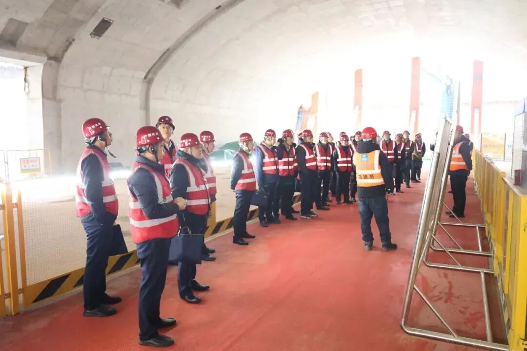 會(huì)前,與會(huì)人員共同來到濟(jì)南軌道交通7號(hào)線龍奧大廈站現(xiàn)場(chǎng),實(shí)地觀摩項(xiàng)目車站基坑與暗挖段施工情況,重點(diǎn)考察了車站大跨無柱拱形頂板結(jié)構(gòu)及其防滲漏治理體系,對(duì)現(xiàn)場(chǎng)管理和工程質(zhì)量給予充分肯定,并就項(xiàng)目體系化管理、流程化管控和精細(xì)化施工等方面進(jìn)行深入交流。