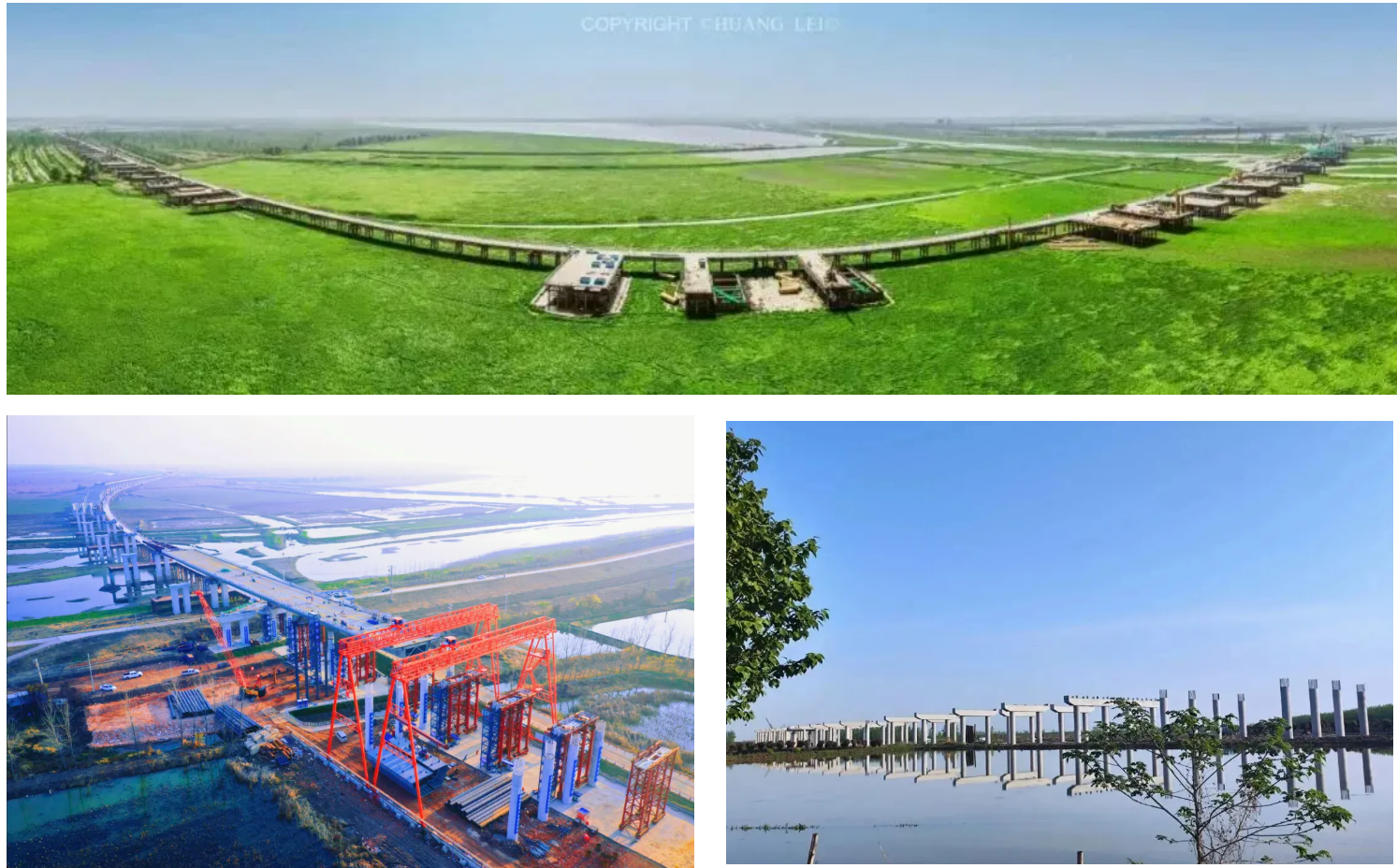 武漢都市圈環(huán)線全長約 360 公里,是湖北省 “十四五” 規(guī)劃重點工程,其中蔡甸段二標項目主線全長 14.16 公里,是中建八局首個穿越國際濕地的高速公路,涉水橋梁占比 90%,穿越地球上同一緯度湖泊群中唯一的典型淡水湖泊和沼澤濕地 “武漢蔡甸沉湖濕地”,攻克濕地保護與工程建設雙重挑戰(zhàn),多次獲得業(yè)主與自然保護區(qū)管理局表揚。