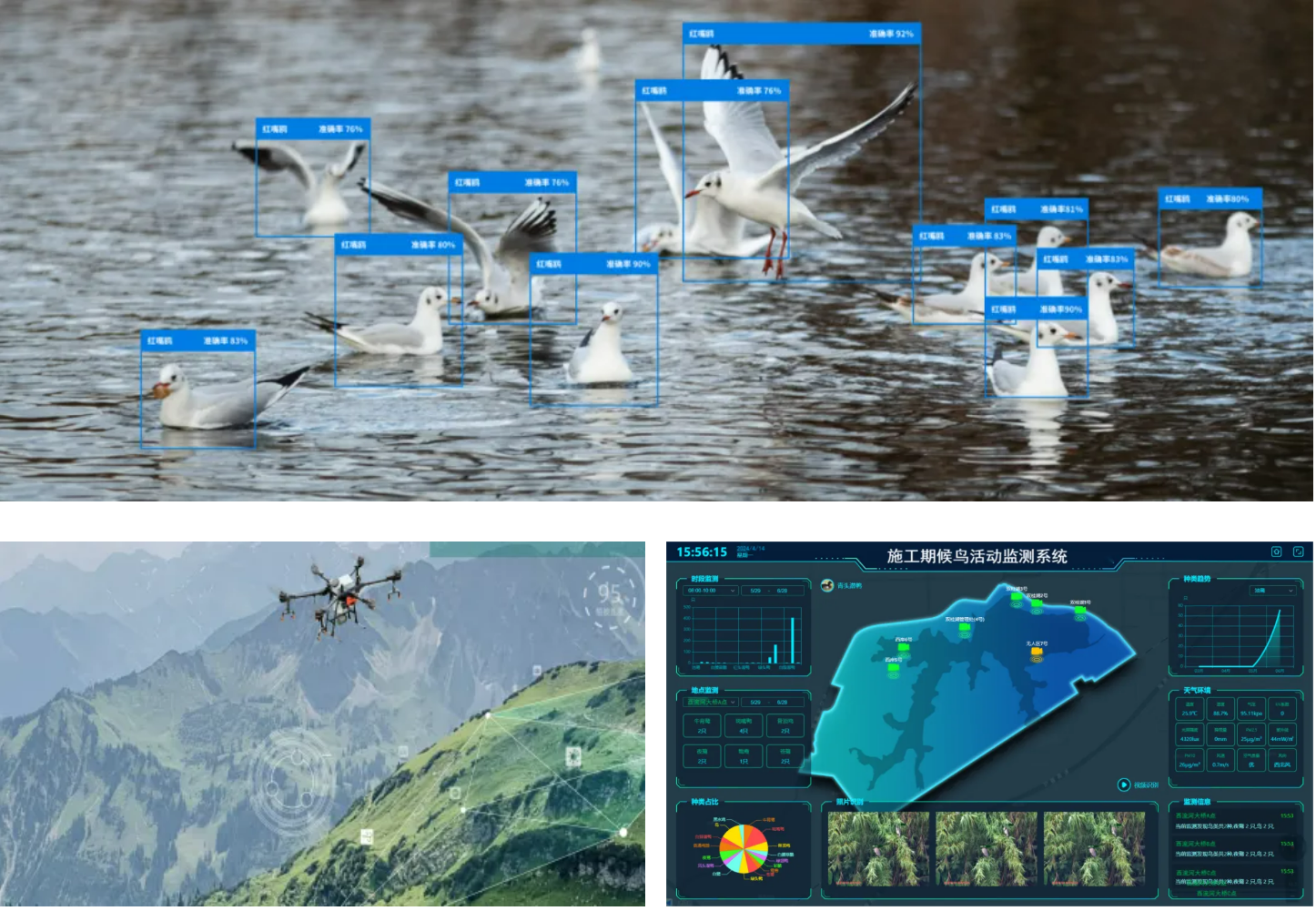綠色環(huán)保展區(qū)針對沉湖濕地生態(tài)保護需求,建立鳥類遷徙、魚類產卵期動態(tài)監(jiān)測機制,研發(fā)基于人工智能的候鳥活動監(jiān)測系統(tǒng),利用高清攝像頭、聲音傳感器和 AI 算法,檢測鳥類聚集或敏感行為,通過水質監(jiān)測設備采集水溫等關鍵信息,并針對性調整施工計劃,確保工程建設與自然環(huán)境和諧共存。