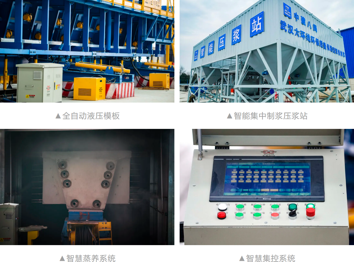 質量管控展區(qū)集中展示了項目智慧梁場的智能化生產線和施工工藝,包括全自動液壓模板、智能集中制漿壓漿站、移動底模臺車、智能鋼筋彎曲中心等設備,可實現各工序 “流水加工、無縫銜接”,生產線配備 “智慧集控系統(tǒng)”,提升梁體預制效率 40%。