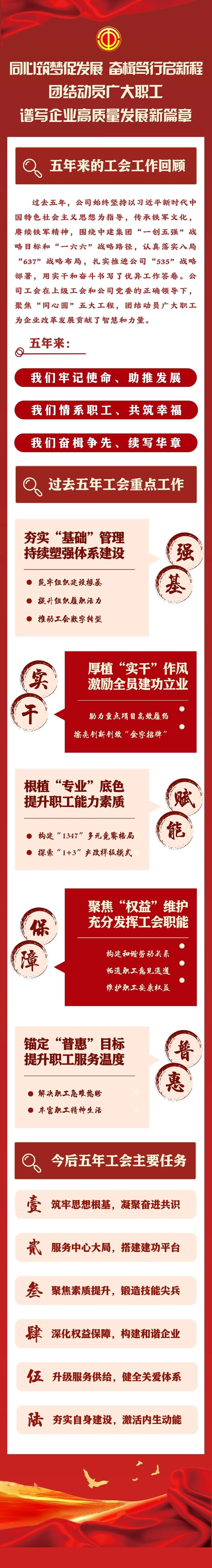 ?;瘧棿砉军h委,向一直以來關(guān)心支持公司發(fā)展的山東省總工會、中建八局工會各位領(lǐng)導(dǎo)表示衷心感謝,向全體職工及家屬致以誠摯問候。?;瘧椫赋觯^去五年,公司工會在推動企業(yè)發(fā)展、服務(wù)職工群眾、選樹先進(jìn)榜樣中積極作為,匯聚職工合力,推動企業(yè)高質(zhì)量發(fā)展取得新突破。站在新起點,公司工會要把準(zhǔn)方向,強(qiáng)化政治引領(lǐng),不斷增強(qiáng)職工群眾的認(rèn)同感、凝聚力,筑牢團(tuán)結(jié)奮斗的組織基礎(chǔ)和思想基礎(chǔ);要圍繞中心,服務(wù)發(fā)展大局,聚焦公司“十五五”目標(biāo)任務(wù),找準(zhǔn)工會工作的切入點和著力點,引導(dǎo)廣大職工立足崗位、爭創(chuàng)一流;要聚焦需求,做實服務(wù)保障,讓職工共享企業(yè)發(fā)展成果;要改革創(chuàng)新,激發(fā)組織活力,推動工作重心下移、服務(wù)力量下沉,團(tuán)結(jié)動員全體職工為公司高質(zhì)量發(fā)展貢獻(xiàn)智慧與力量。