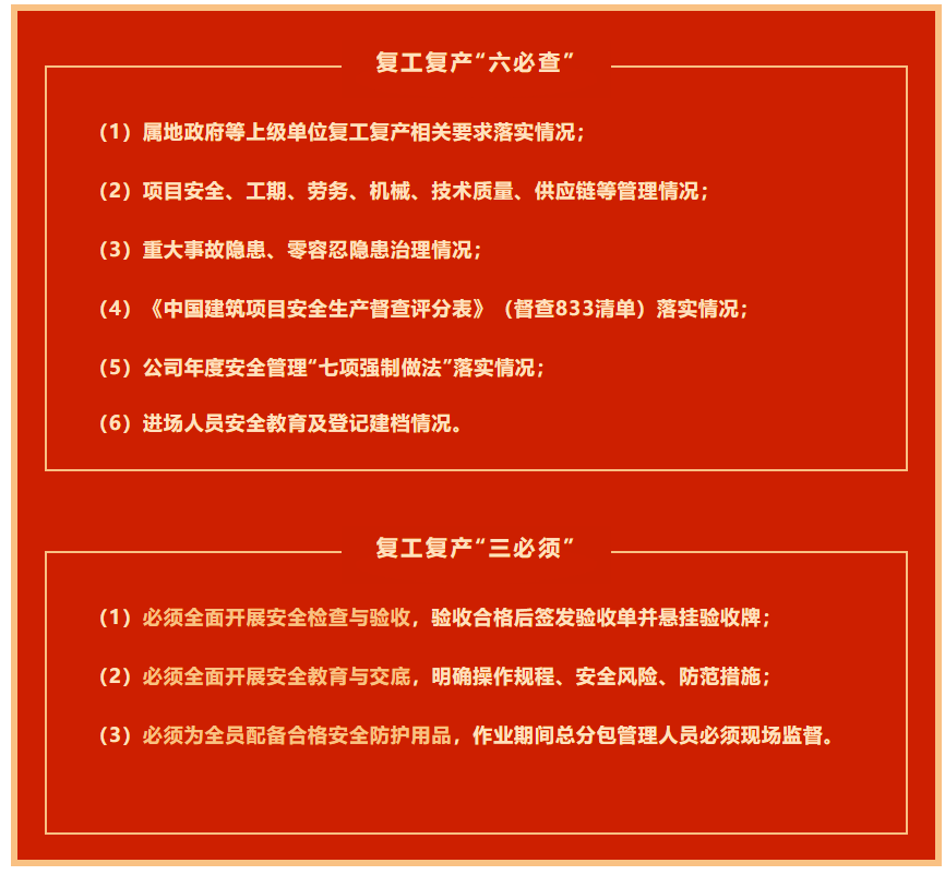 公司2026年春節(jié)后復(fù)工安全生產(chǎn)大檢查啟動,嚴守底線、不越紅線、平穩(wěn)復(fù)工,安全生產(chǎn)“六必查”“三必須”請查收。