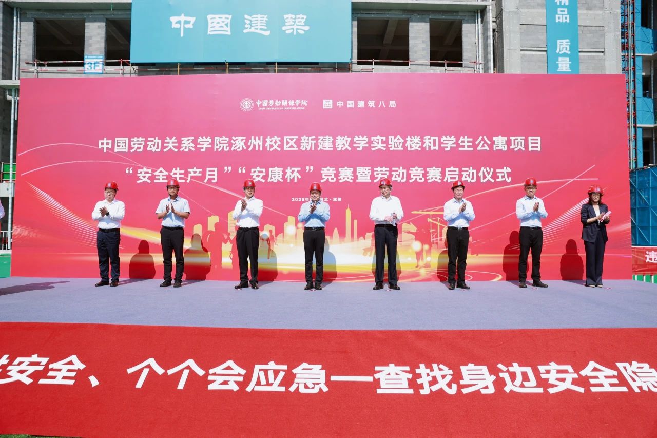 6月17日,中國勞動關(guān)系學(xué)院涿州校區(qū)新建教學(xué)實(shí)驗(yàn)樓和學(xué)生公寓項(xiàng)目舉行2025年“安全生產(chǎn)月”“安康杯”競賽暨勞動競賽啟動儀式。