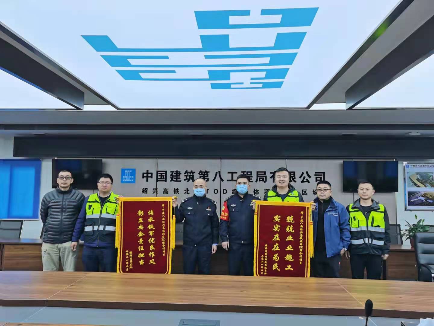 2月10日,鏡湖交警大隊(duì)和紹興高鐵北站鐵路派出所為紹興高鐵北站TOD綜合體項(xiàng)目(A區(qū)塊)送來了“傳承鐵軍優(yōu)良作風(fēng),彰顯央企責(zé)任擔(dān)當(dāng)”與“兢兢業(yè)業(yè)施工,實(shí)實(shí)在在為民”兩面錦旗。
