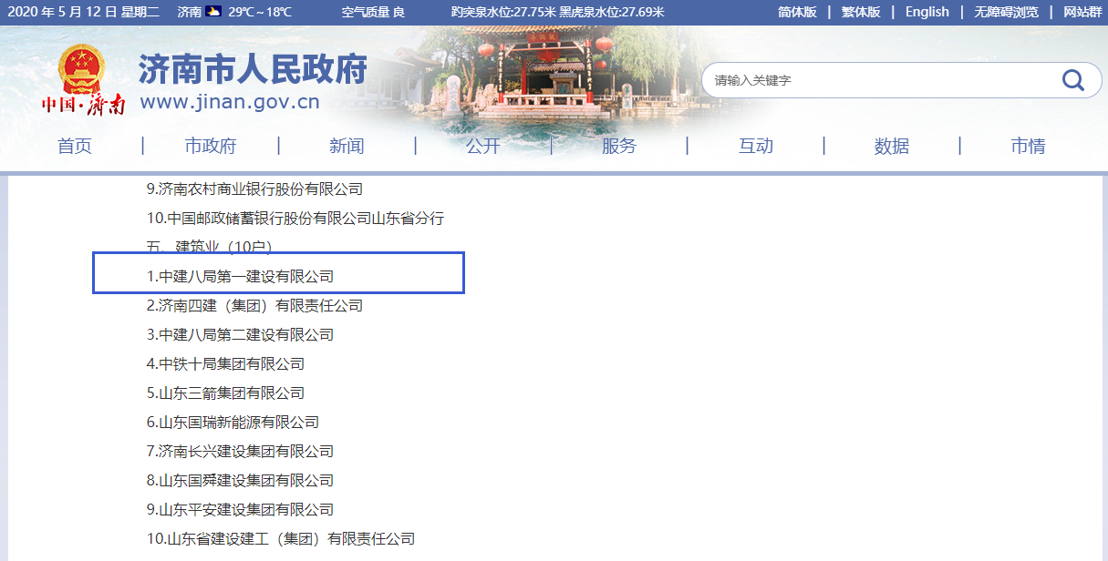 近日,濟(jì)南市政府官網(wǎng)公布了創(chuàng)新發(fā)展突出貢獻(xiàn)企業(yè)名單,對建筑業(yè)、制造業(yè)等9個(gè)板塊,共計(jì)110家企業(yè)進(jìn)行表彰,建筑業(yè)共有10家企業(yè)入選,中建八局一公司榮登榜首!