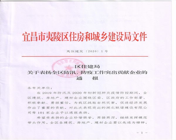 4月12日,宜昌萬(wàn)達(dá)項(xiàng)目喜獲宜昌市夷陵區(qū)住房和城鄉(xiāng)建設(shè)局發(fā)文表?yè)P(yáng)。