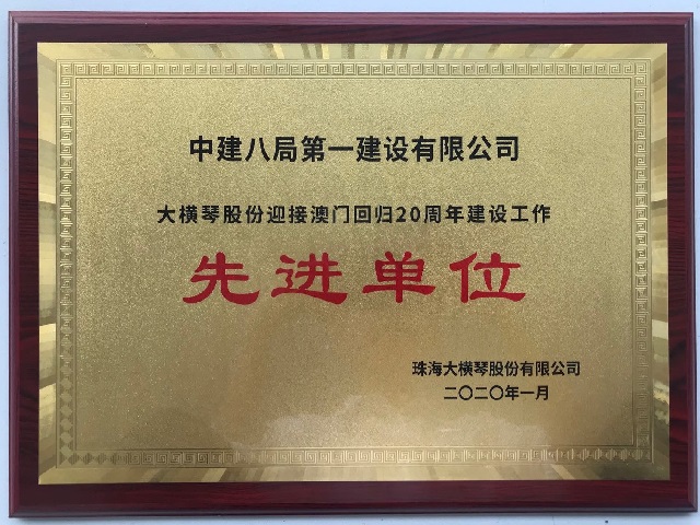 2020年1月7日在珠海大橫琴股份有限公司2019年迎澳回歸20周年建設(shè)工作表彰大會上,珠海橫琴天沐河橋梁裝飾及附屬改造工程項(xiàng)目榮獲“先進(jìn)單位”,項(xiàng)目經(jīng)理王正濤榮獲“先進(jìn)個人”。