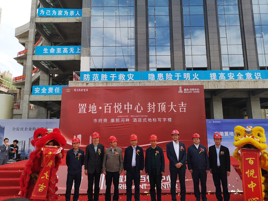 4月18日上午9時(shí)整,安慶置地·百悅中心項(xiàng)目隆重舉行A1主樓封頂儀式。 安慶市政府副秘書長(zhǎng)畢圣國(guó)、安慶宜秀區(qū)副區(qū)長(zhǎng)汪沛、安慶市住房和城鄉(xiāng)建設(shè)局副局長(zhǎng)王武、安慶市住房和城鄉(xiāng)建設(shè)局房地產(chǎn)市場(chǎng)監(jiān)管科科長(zhǎng)丁邦朝、安慶市宜秀開發(fā)區(qū)管委會(huì)副主任王曉峰、中建八局一公司華中公司經(jīng)理曹明國(guó)、招商銀行安慶分行行長(zhǎng)宋騁、安徽置地安慶區(qū)域公司總經(jīng)理胡奇參加了此次封頂儀式。