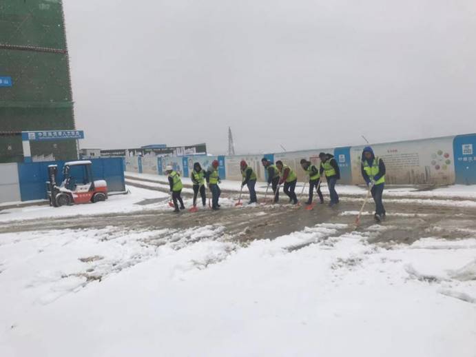 武漢華星光電綜合配套區(qū)項(xiàng)目進(jìn)行初雪鏟雪活動(dòng)