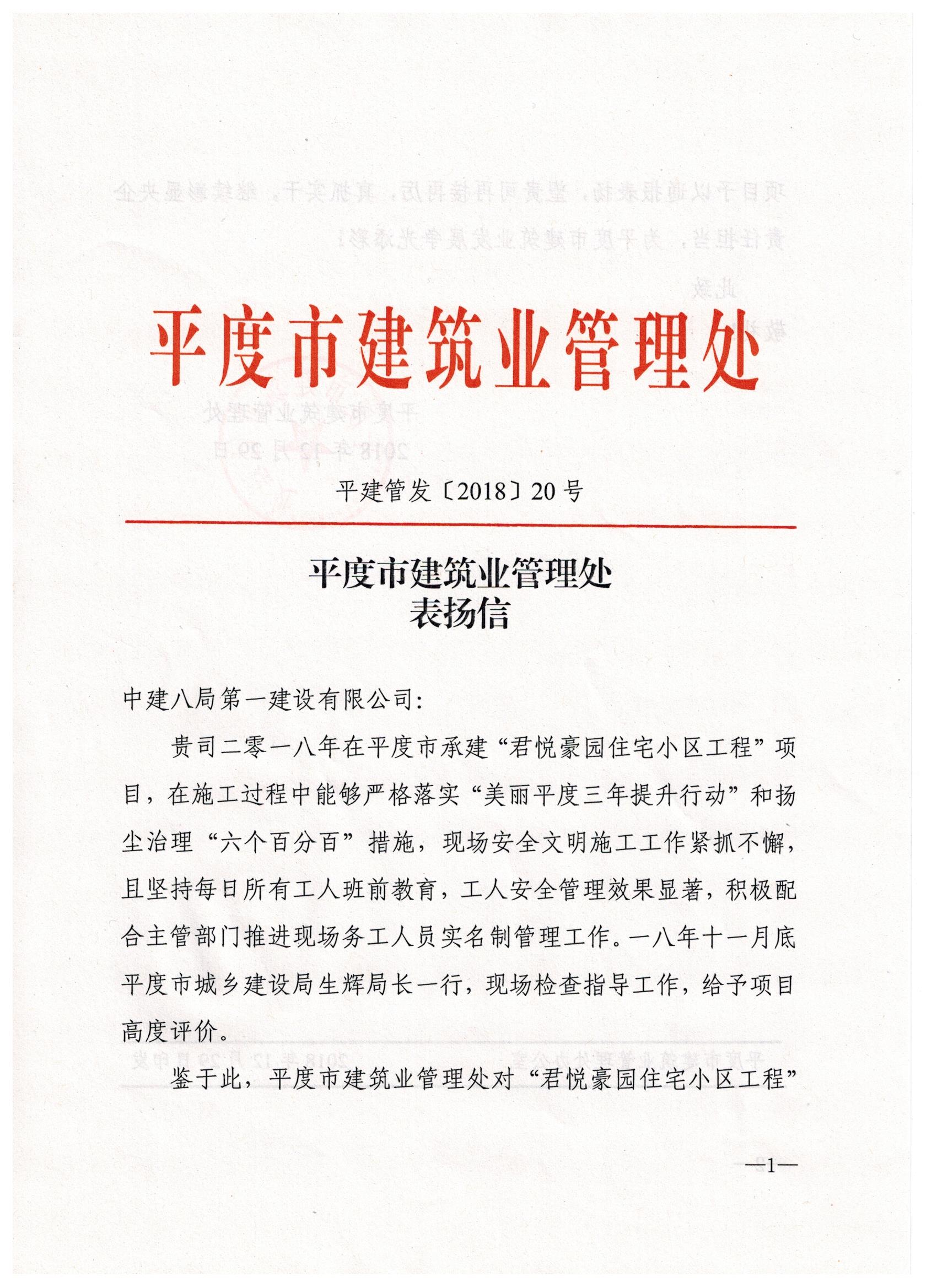 近日,青島公司平度君悅豪園住宅小區(qū)項(xiàng)目喜獲平度市城鄉(xiāng)建設(shè)局表揚(yáng)信,信中著重贊揚(yáng)我司項(xiàng)目上開展的安全文明施工各項(xiàng)具體工作,并對(duì)工程后續(xù)建設(shè)寄予厚望。
