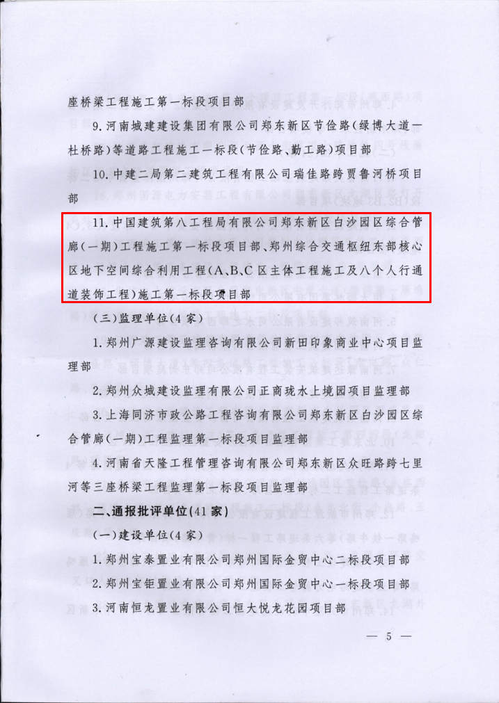 11月16日,在鄭東新區(qū)2018年第三季度“爭創(chuàng)標準化工地、打造精品工程”建設(shè)工作會議上,鄭州市鄭東新區(qū)管理委員會對管理規(guī)范、現(xiàn)場管理科學(xué)有序、工程實體質(zhì)量較好的建設(shè)、施工、監(jiān)理單位予以通報表揚。 其中我司鄭東新區(qū)白沙園區(qū)綜合管廊項目部獲得表揚,這是暨第二季度講評會之后,鄭東新區(qū)白沙園區(qū)綜合管廊項目部連續(xù)兩個季度獲此殊榮。