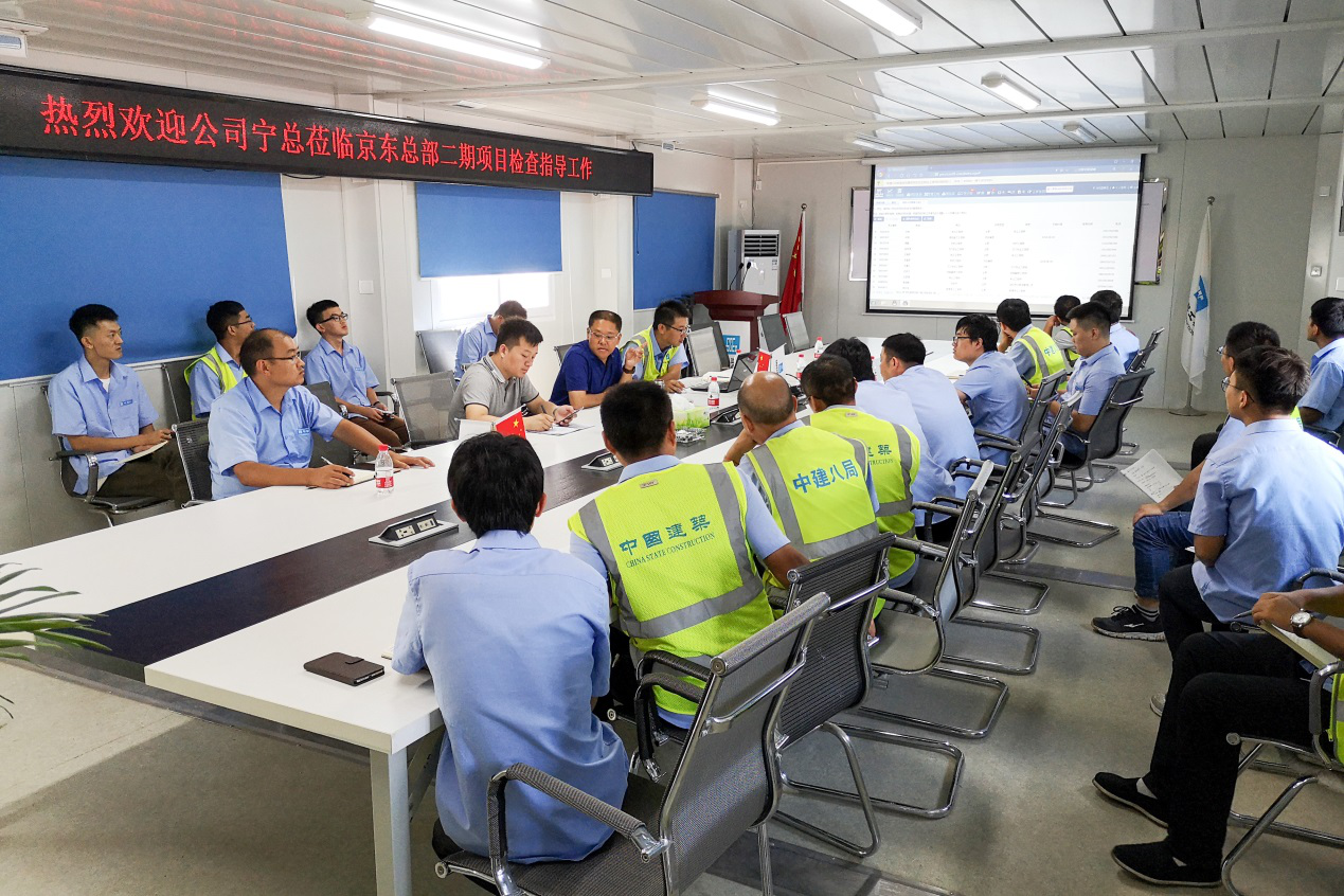 8月10日上午,公司副總經(jīng)理寧文忠蒞臨京東總部二期項(xiàng)目檢查指導(dǎo)工作,華北公司副經(jīng)理董軍濤陪同檢查。