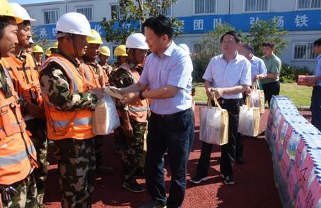 2018年6月25日下午,濟(jì)南市總工會黨組書記、常務(wù)副主席傅金峰,濟(jì)南市總工會副主席蒲玉全,局工會副主席王為兵一行來到港城二期項目部,對項目部工會工作開展情況進(jìn)行調(diào)研,并對項目管理人員及一線工人進(jìn)行“送清涼”慰問活動。