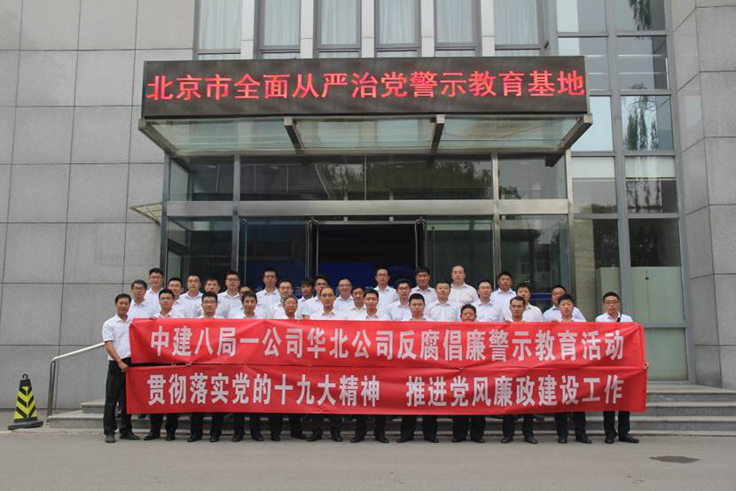 為深入學(xué)習(xí)貫徹習(xí)近平新時代中國特色社會主義思想和黨的十九大精神,深入推進(jìn)黨風(fēng)廉政建設(shè)和反腐敗工作,6月22日下午,一公司華北公司黨總支組織華北公司領(lǐng)導(dǎo)班子、副副職、機(jī)關(guān)部門經(jīng)理、項目經(jīng)理、項目書記等40余人參觀了北京市全面從嚴(yán)治黨警示教育基地。