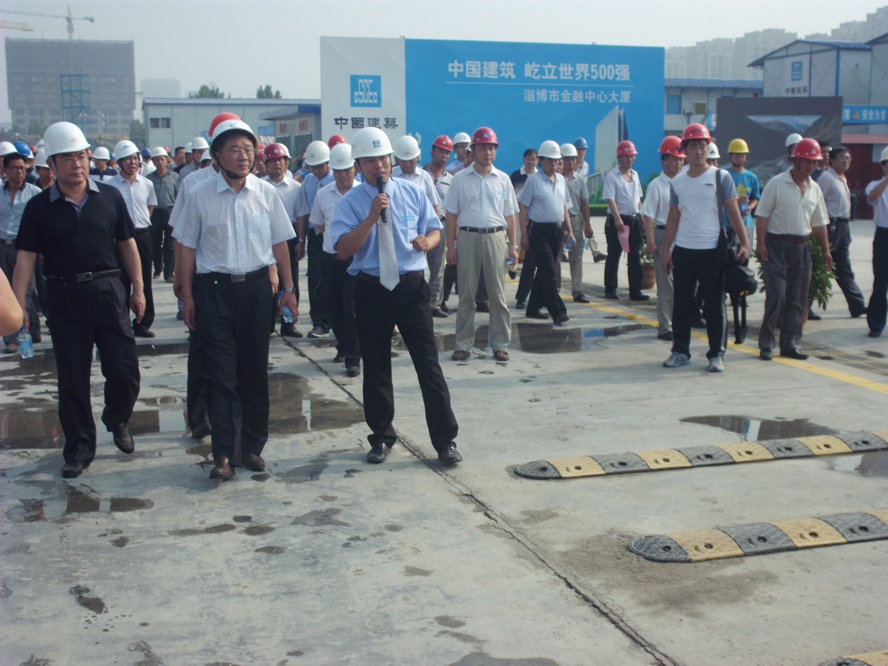 參加本次觀摩會(huì)的有山東省安全監(jiān)督管理站站長欒啟亭、淄博市住房建筑監(jiān)督局副局長劉超軍、淄博市環(huán)保局副局長李學(xué)太、淄博市質(zhì)量安全監(jiān)督站站長宋超等山東省、淄博市各區(qū)縣住建局質(zhì)量安全工作分管局長、質(zhì)量、安全監(jiān)督機(jī)構(gòu)負(fù)責(zé)人,以及淄博市直監(jiān)督工程建設(shè)單位項(xiàng)目負(fù)責(zé)人、監(jiān)理單位主要負(fù)責(zé)人及項(xiàng)目總監(jiān)、施工單位主要負(fù)責(zé)人及項(xiàng)目經(jīng)理;淄博市市住建局、市質(zhì)安站相關(guān)工作人員。山東分局副局長宋疆增、公司施工管理部部長梁本乾等陪同參觀。