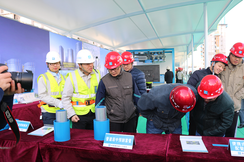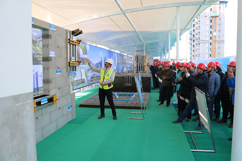 觀摩團一行首先在項目會議室聽取了項目關(guān)于“新技術(shù)應(yīng)用、質(zhì)量常見問題的亮點做法、BIM應(yīng)用于智慧建造、揚塵治理措施”等介紹。隨后,觀摩團在項目經(jīng)理張志剛的引導(dǎo)下,先后參觀了海綿城市、透視混凝土地面、鋼板道路、風光互補太陽能路燈、新技術(shù)應(yīng)用樣板展示區(qū)、各分項工程亮點做法展示區(qū)、智慧建造體驗館、工序樣板層和交房樣板層、安全體驗區(qū)。截至26日下午17時,項目當天已累計接待觀摩人員2125人,預(yù)計27日觀摩人數(shù)將達到3000余人。
