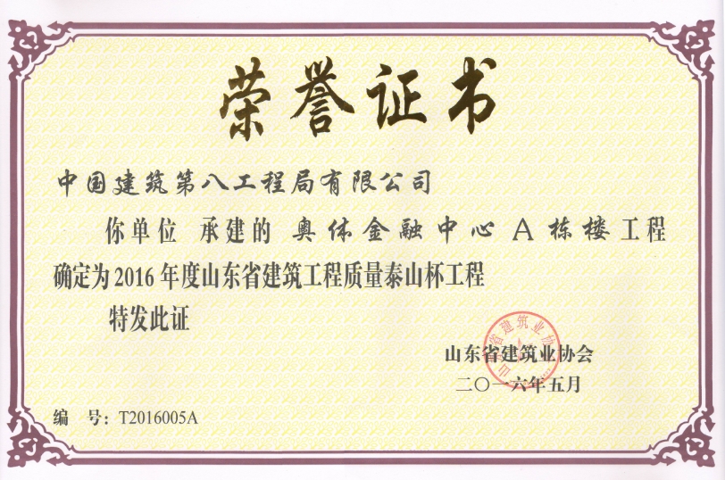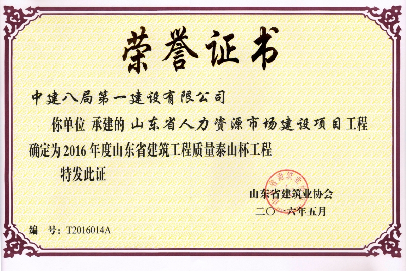 近日,再次傳來(lái)喜報(bào)――人力資源市場(chǎng)項(xiàng)目、奧體金融中心A棟兩個(gè)工程同時(shí)榮獲2016年度山東省建筑工程質(zhì)量“泰山杯”獎(jiǎng)。
