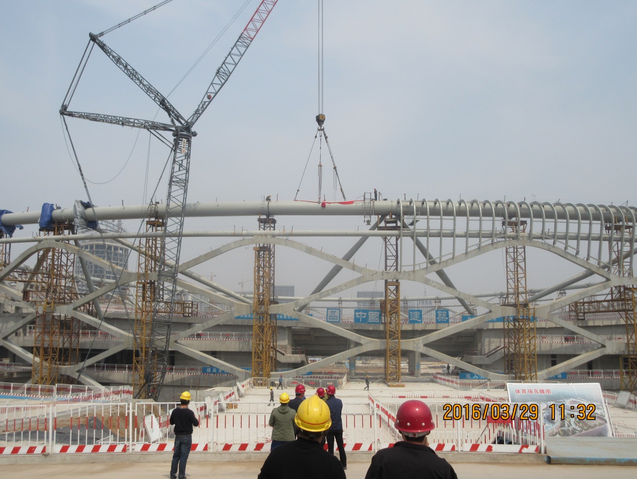 棗莊體育場鋼結構壓力環(huán)梁順利合攏