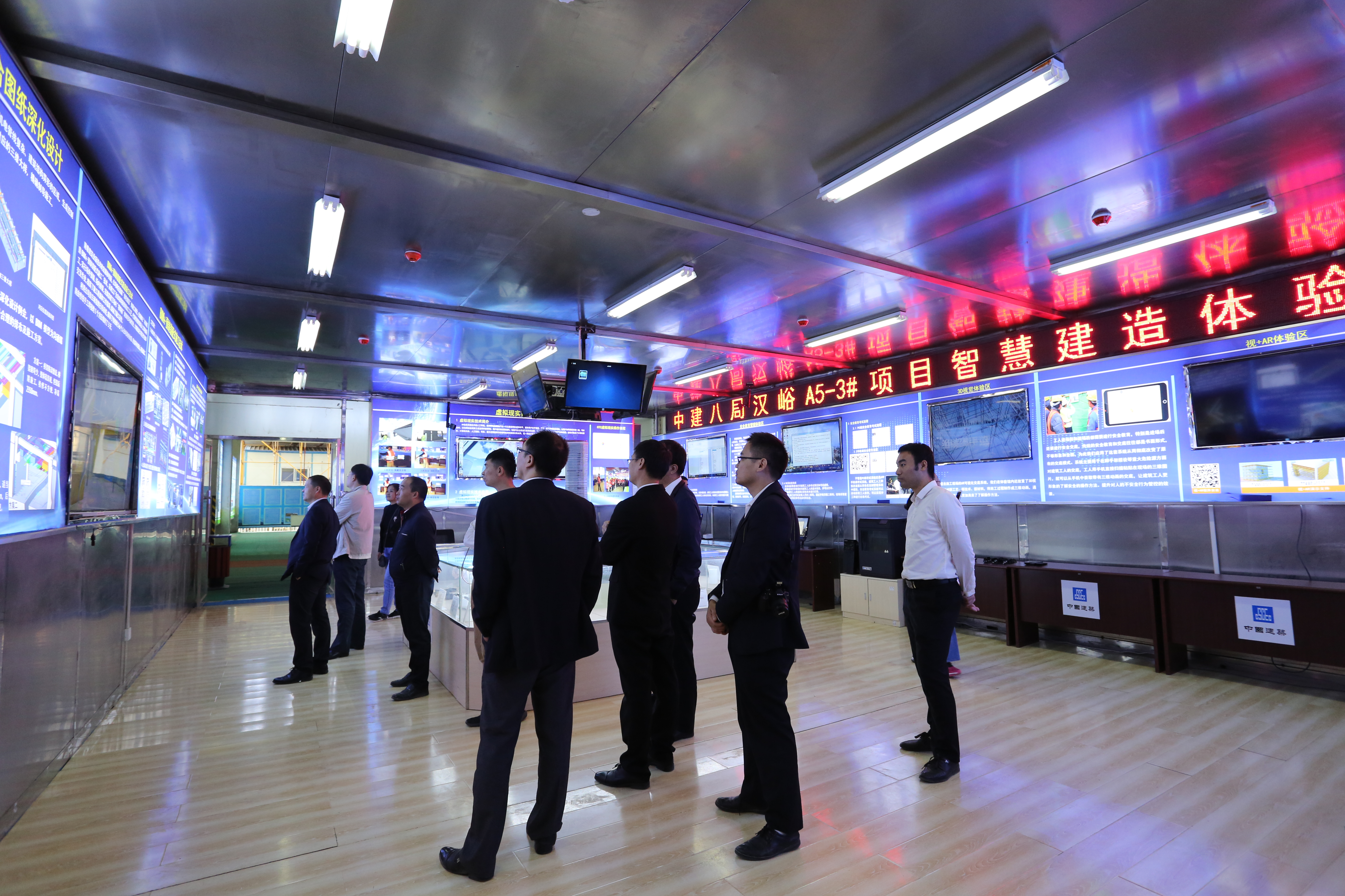 10月17日下午四點,中建安裝由項目管理部經(jīng)理丁衛(wèi)帶隊一行十余人到項目進行觀摩學習,各位領(lǐng)導首先參觀了項目的智慧建造體驗館,項目管理人員就項目的技術(shù)管理、科技創(chuàng)新、BIM技術(shù)深化設計及應用等方面向各位領(lǐng)導進行了介紹,領(lǐng)導對項目在科技創(chuàng)新方面取得的各項成就表示高度認可。隨后各位領(lǐng)導到施工現(xiàn)場進行參觀,對樣板層的各項技術(shù)運用實例進行了了解。