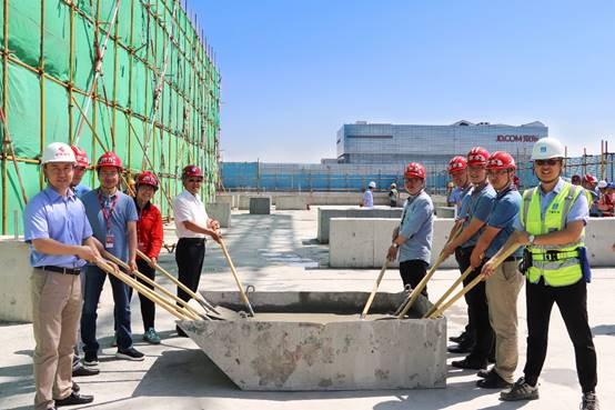 在各參建單位共同見證下,與會領(lǐng)導(dǎo)共聚塔樓樓頂,澆筑最后一方混凝土,標(biāo)志著項目主體結(jié)構(gòu)順利封頂,提前預(yù)祝京東618大賣。