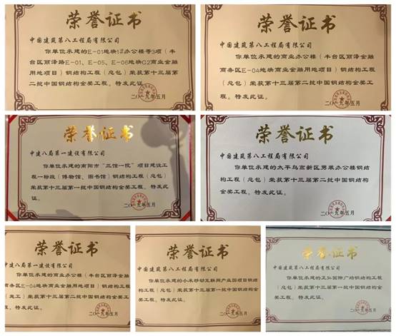 公司擁有房屋建筑工程施工總承包特級資質、市政公用工程施工總承包特級資質、建筑行業(yè)(建筑工程、人防工程)設計甲級資質、市政行業(yè)設計甲級資質、鋼結構總承包一級資質等。榮譽見證實力,一次斬獲七項全國鋼結構最高獎。再次證明了公司在鋼結構領域優(yōu)秀的施工和管理能力。(李賀雷)