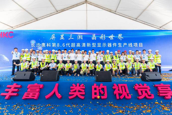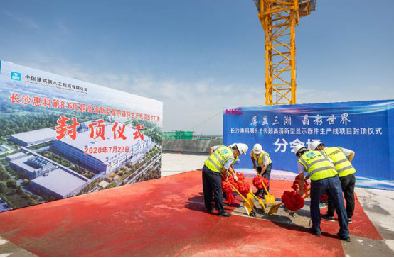湖南省副省長陳飛,省政府副秘書長易佳良,長沙市委副書記、市長鄭建新,長沙市委常委、副市長夏建平,長沙市委常委、瀏陽市委書記黎春秋,長沙市副市長邱繼興,惠科集團總裁王智勇、執(zhí)行副總裁盧集暉、副總裁及長沙惠科光電總經(jīng)理杭井強,十一科技董事長趙振元,中建八局華南分局黨委書記許啟新,公司總經(jīng)理、黨委副書記齊朋,公司華南公司總經(jīng)理谷力,及長沙市、瀏陽市、惠科集團、中建八局等相關(guān)單位代表200余人出席封頂儀式現(xiàn)場。
