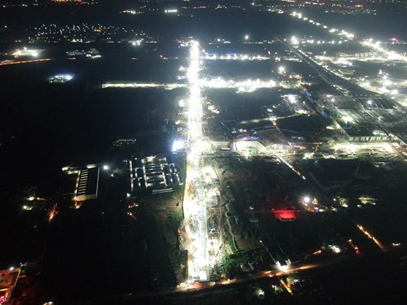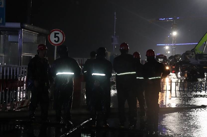 8月23日晚,項目管理人員冒著大雨巡視現(xiàn)場