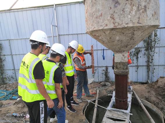 入夏以來,項目成員不畏酷暑,臨建搭設通過大家不懈努力最終落成。項目成員從第二次推進會以來,以大干快上的信念砥礪前行。面對地質(zhì)穩(wěn)定性差、適宜性差的地質(zhì)條件,項目人員集思廣益、部門之間相互協(xié)調(diào),共同為樁基施工奠定基礎,保障了首樁灌注圓滿完成。