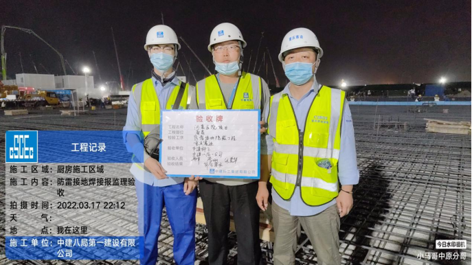 一公司負責廚房標段的機電安裝和管道鋪設(shè)工作,自從3月17日下午3點場地具備作業(yè)條件以后,項目團隊跑步進場,8名工程師、24名工人全工程穿插施工,在6小時內(nèi)完成了全場防雷接地工作,累計焊接359個點位,并與當晚10點提前通過驗收,為機電專業(yè)的后續(xù)大穿插施工奠定了良好基礎(chǔ)。