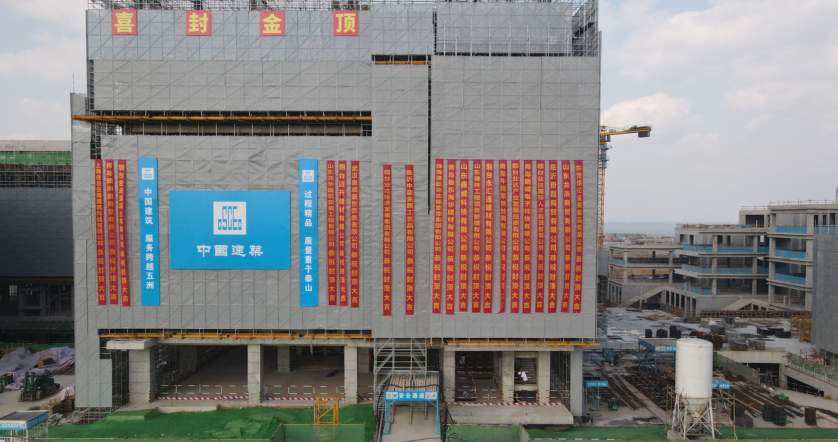 煙臺(tái)八角灣海洋研究院項(xiàng)目EPC工程總承包一標(biāo)段封頂