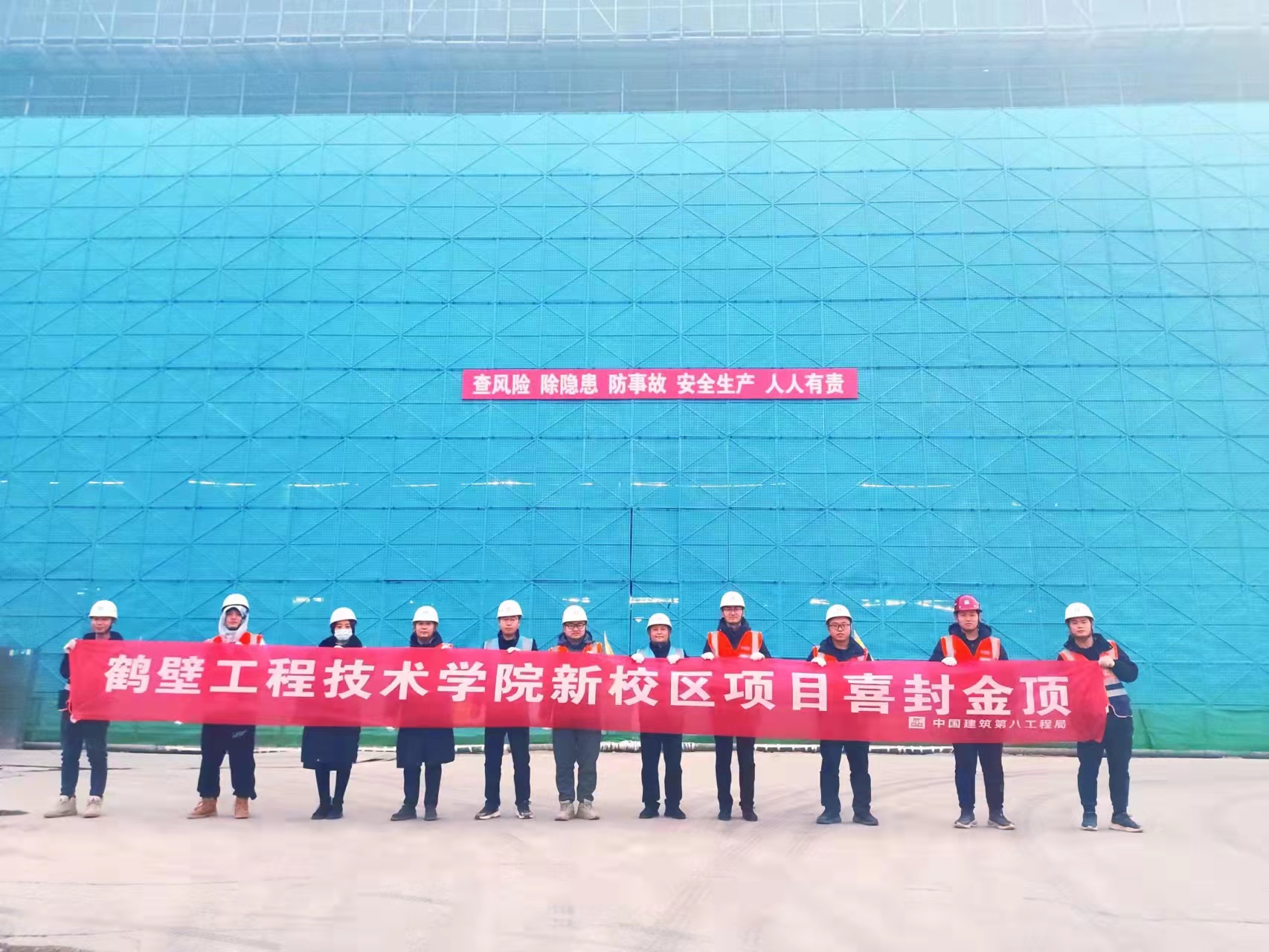 1月4日,在建設(shè)單位、監(jiān)理單位及項(xiàng)目全體管理人員的共同見證下,鶴壁工程技術(shù)學(xué)院新校區(qū)項(xiàng)目(一期)順利封頂。