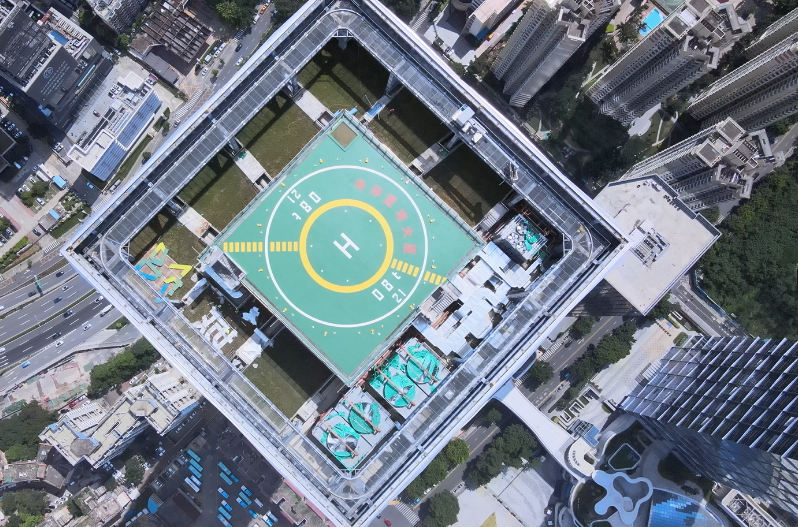 大廈頂部設(shè)置高端停機(jī)坪,為企業(yè)定制專屬航線,滿足消防救災(zāi)、貴賓接送、醫(yī)療救護(hù)、旅游觀光等多方需求。項(xiàng)目整體規(guī)劃設(shè)計(jì)突顯山水延伸與融合的理念,對標(biāo)國際綠色建筑標(biāo)準(zhǔn),堅(jiān)持人與自然和諧相處,榮膺2022年度廣廈獎。