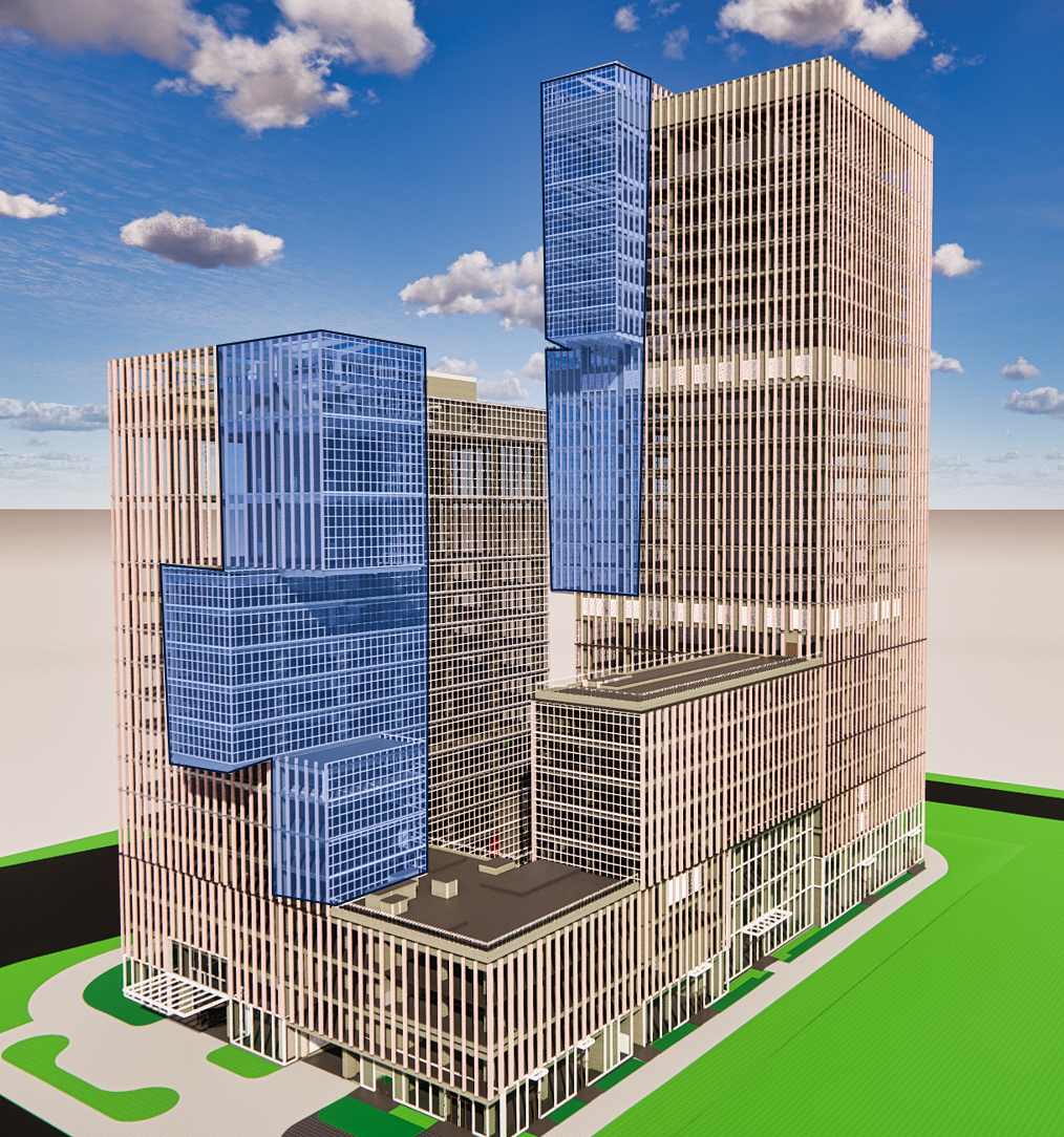 A1塔樓外立面造型錯落,擁有多處鋼結構懸排區(qū)域,總懸挑重量達1500噸,項目團隊應用BIM技術全周期管理,通過BIM輔助圖紙會審,累計解決圖紙問題100余項,避免了800余處施工位置沖突。