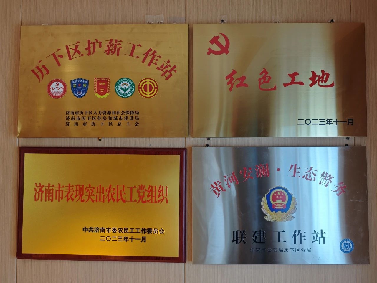 項目是濟南市住建局和市場監(jiān)督管理局勞務管理試點項目,為工友打造了“護薪工作站”,通過“普法大講堂”“技能大比武”等方式,提升工友技能水平和專業(yè)能力,在施工區(qū)域設置安全隱患二維碼,鼓勵全員參與安全隱患治理,提高現(xiàn)場施工標準化水平,榮獲山東省工程質量管理標準化示范工程、省安全文明標準化工地、濟南市表現(xiàn)突出農(nóng)民工黨組織。