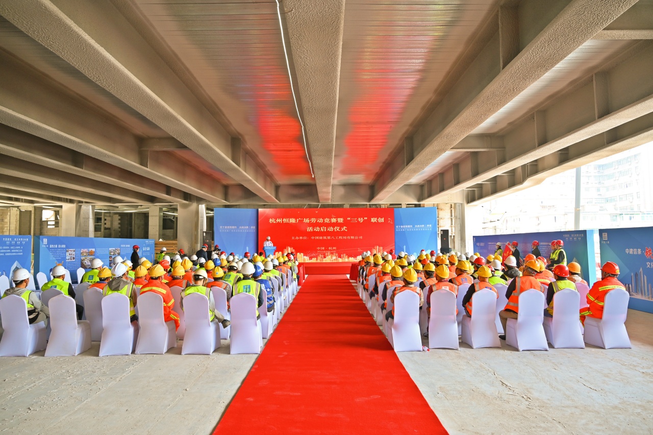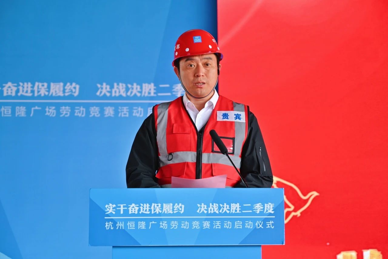 實干奮進保履約,決戰(zhàn)決勝二季度。4月10日,位于杭州拱墅區(qū)武林廣場商圈的恒隆廣場項目舉行勞動競賽啟動儀式。恒隆地產有限公司董事唐龍?zhí)?,杭州恒隆房地產有限公司副總經理陳永強、江錦正、吳嘉麒、朱家華,中建八局華東分局黨委副書記王鵬,中建八局一公司黨委副書記、總經理牛化憲,副總經理霍文濤、辛建龍,工程管理部、工會工作部及華東公司相關負責人等共計100余人參加。