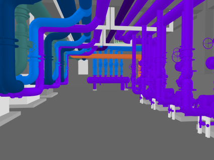 項(xiàng)目地下車庫(kù)車道區(qū)域管線復(fù)雜,對(duì)管線標(biāo)高要求嚴(yán)格。項(xiàng)目采取綜合支架排布,減少管線碰撞,提高車道凈高,同時(shí)根據(jù)現(xiàn)場(chǎng)施工進(jìn)度,對(duì)制冷機(jī)房、消防泵房等重要功能性房間,結(jié)合BIM技術(shù)應(yīng)用,對(duì)機(jī)房、泵房綜合管線進(jìn)行排布優(yōu)化,使得機(jī)房?jī)?nèi)部維修方便、整齊美觀。
