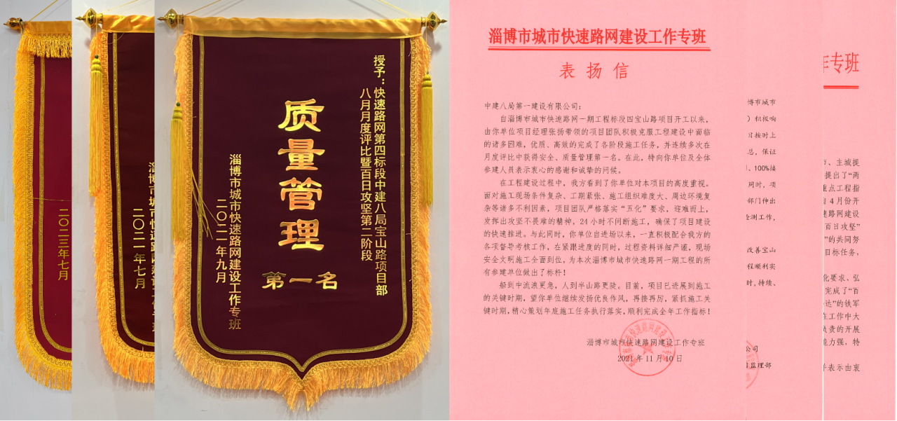 累計迎接中國市政工程協(xié)會等大型觀摩交流50余次,在業(yè)主組織的勞動競賽和表彰大會中獲得安全管理、質量管理第一名、“施工突出貢獻單位”等榮譽,累計收獲20余封表揚信和錦旗。