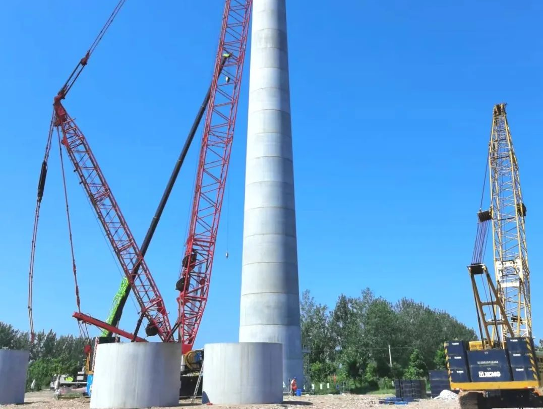 該項(xiàng)目為48MW分散式風(fēng)電項(xiàng)目的混塔管片供應(yīng),具有自重大、耐久性和穩(wěn)定性好等優(yōu)點(diǎn),尤其適用于低風(fēng)速、大風(fēng)切變、運(yùn)輸困難區(qū)域以及大單機(jī)容量機(jī)組。塔身混凝土塔段和鋼塔段的設(shè)計(jì)組成確保了結(jié)構(gòu)的穩(wěn)定與安全,可大幅減小頂端擺幅,提高發(fā)電量延長機(jī)組疲勞壽命,且在生產(chǎn)過程中一次澆筑成形,色澤均勻、外形美觀、節(jié)能環(huán)保能,有效縮短施工周期,是風(fēng)電行業(yè)發(fā)展的趨勢。
